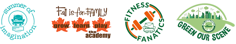 The Academy is not just for kids…it’s for your WHOLE family. Our fun, seasonal programs such as “Fall is for Your Family”, “Fitness Fanatics”, and “Green Our Scene” keep our families connected to each other and to the community.
